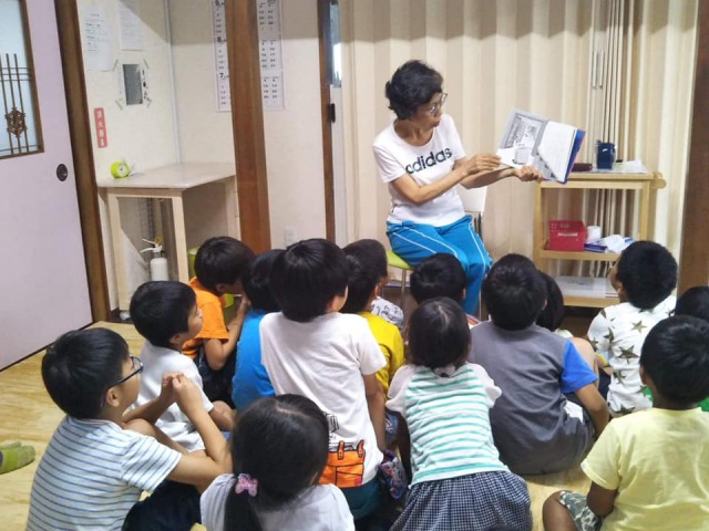 昼食後は『読み聞かせ』。工藤先生の語りに釘付け!誰一人喋らず、夢中になりしっかり聴いていました!