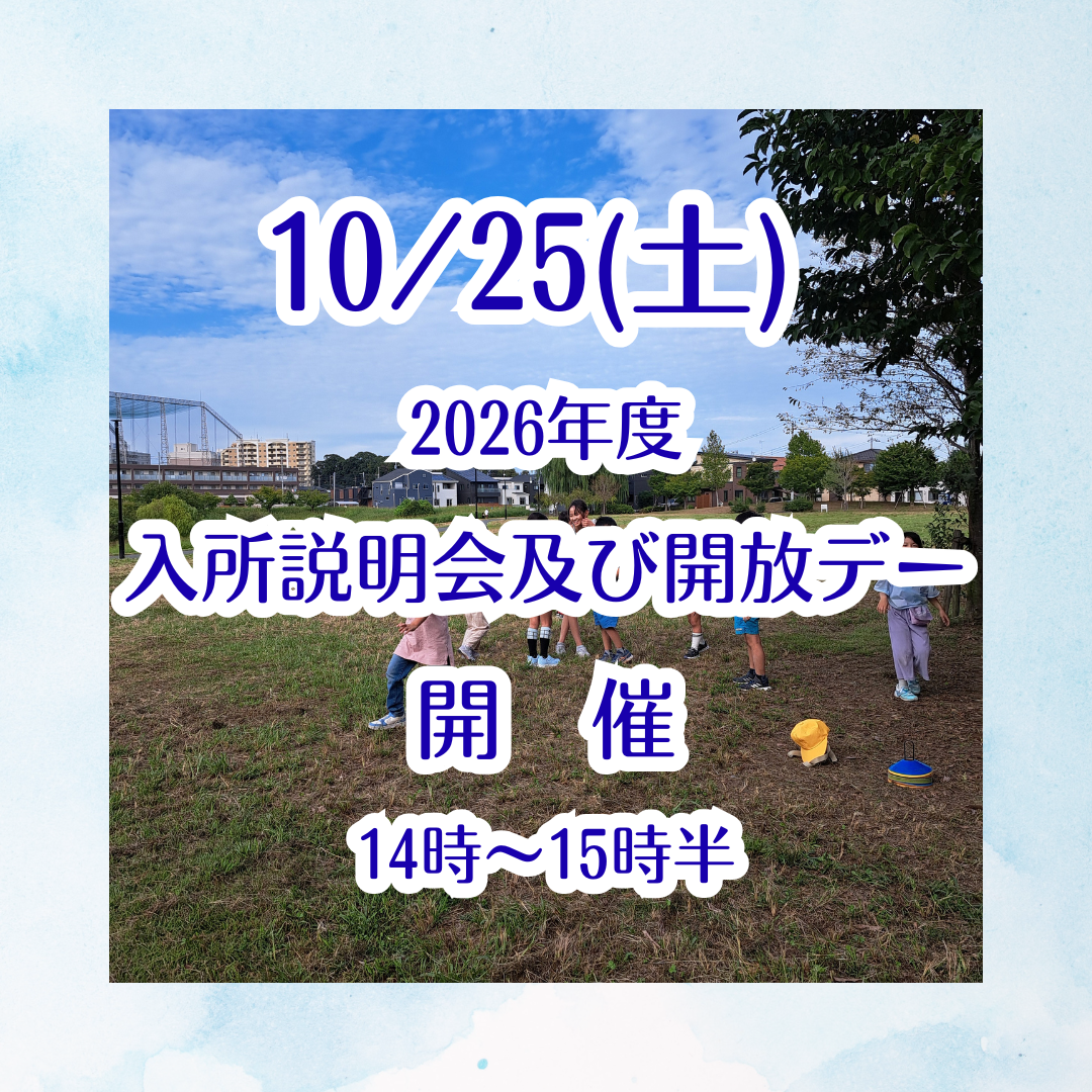 【☆NEWS☆】10月25日(土)14:00~15:30 2026年度入所説明会及び開放デー開催&流山産業博出演のお知らせ