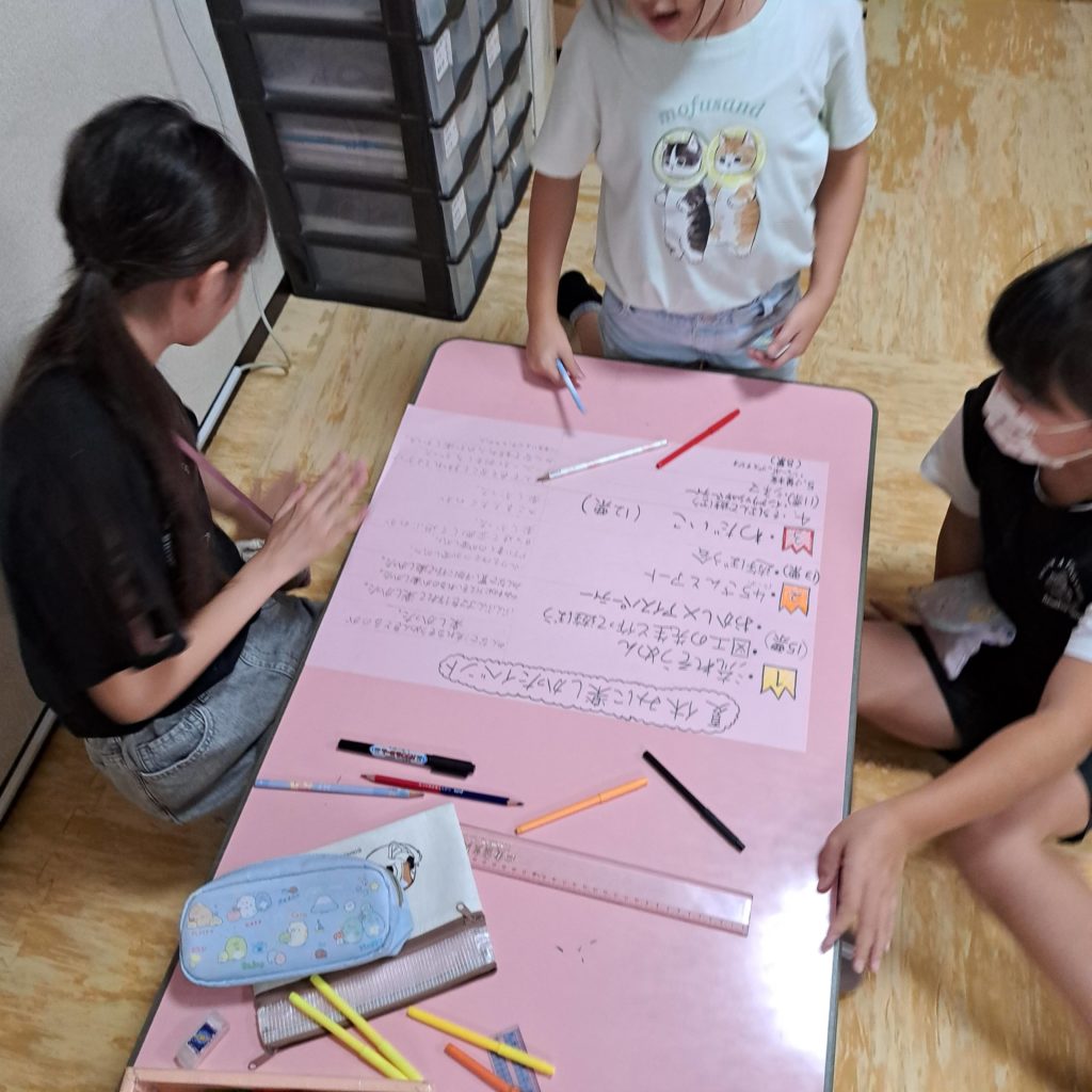 ゆーこ先生です。 本日は外に場所を変えて夏休みの評価&改善点等洗い出し会議を行いました。 こどもたちが長い夏休みをどう過ごすのかは、保護者さまが毎年心配している課題でもあります。 一般的に夏休みは小学校が40日間お休みなので、親自身が仕事をセ... -